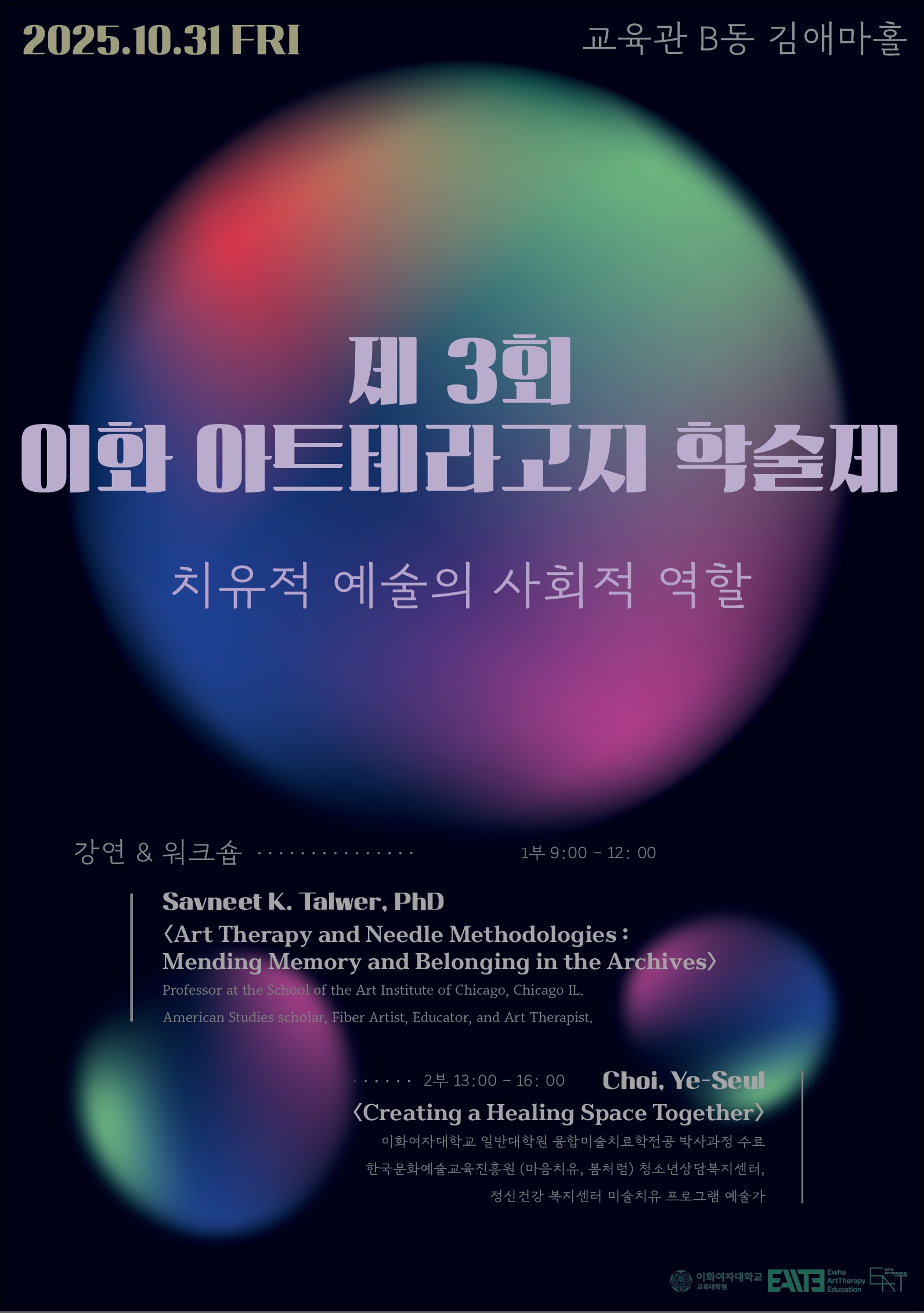 이화여대 교육대학원 미술치료교육전공  <제 3회 이화 아트테라고지 학술제 : 치유적 예술의 사회적 역할>에 많은 관심 부탁드립니다.