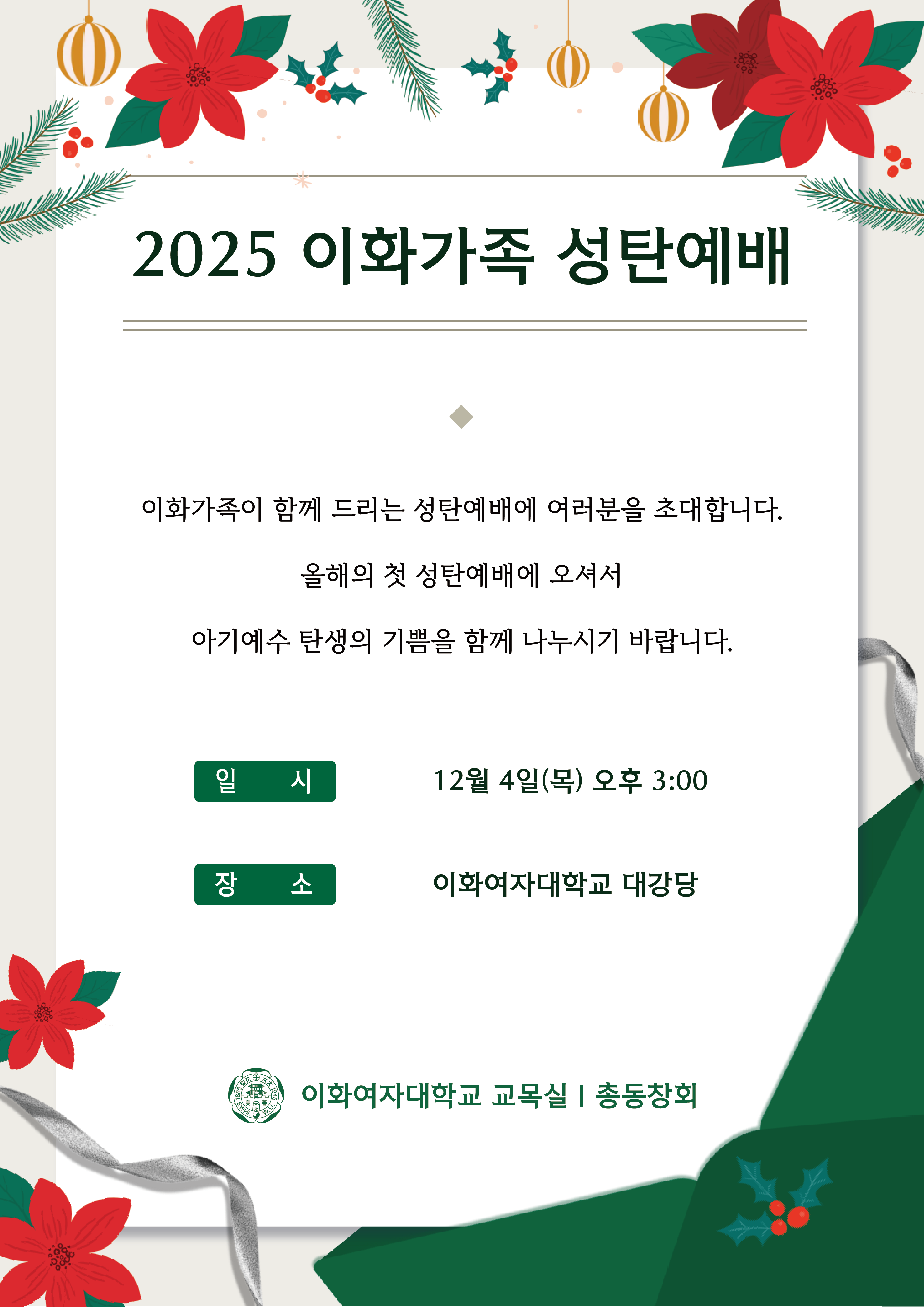 올해부터 이화가족성탄예배는 학부 학생들의 채플 보충을 위한 특별보충채플로 진행하지 않고,