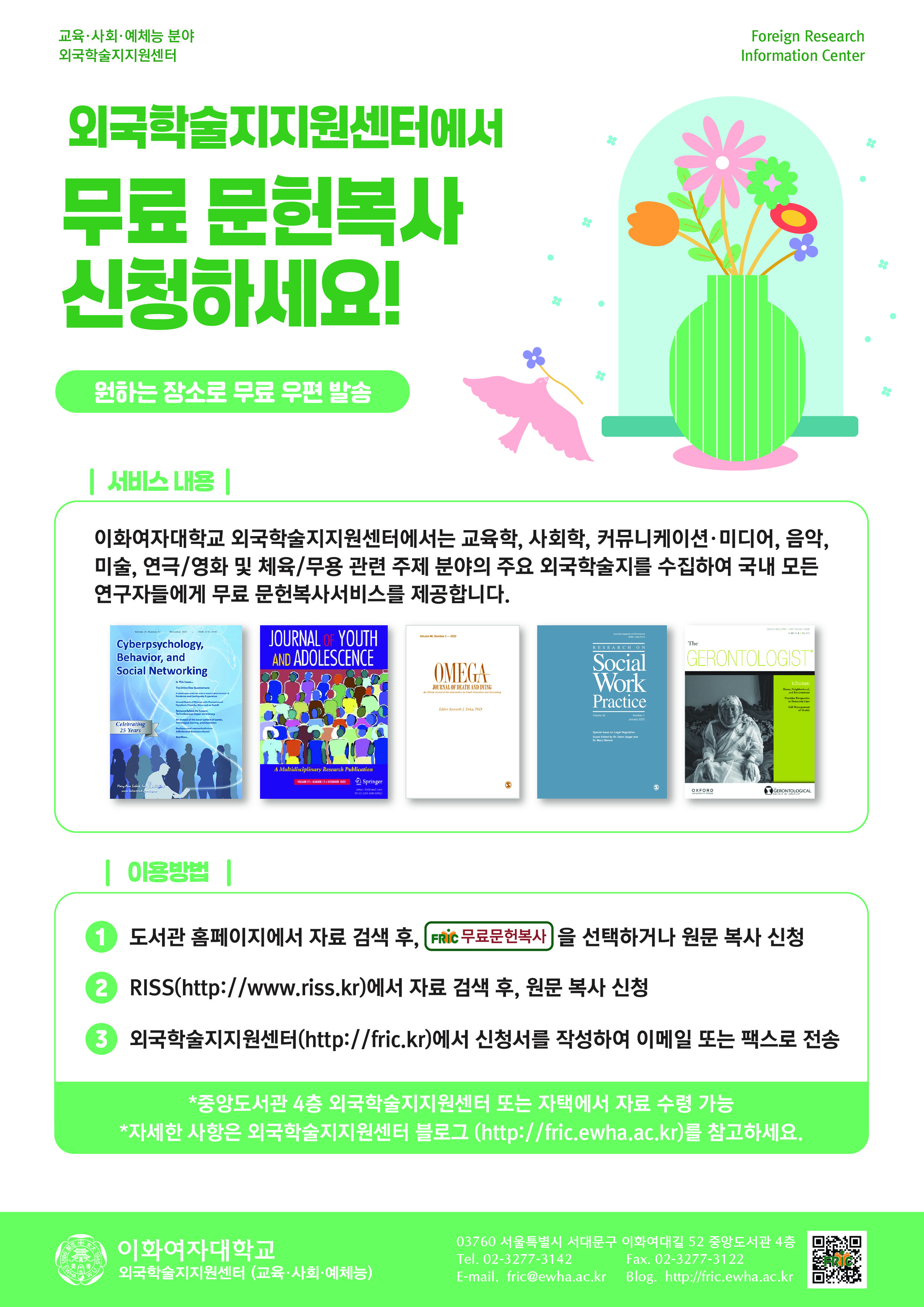 [공지] [외국학술지지원센터] 교육·사회·예체능분야 저널 무료 문헌복사서비스 안내