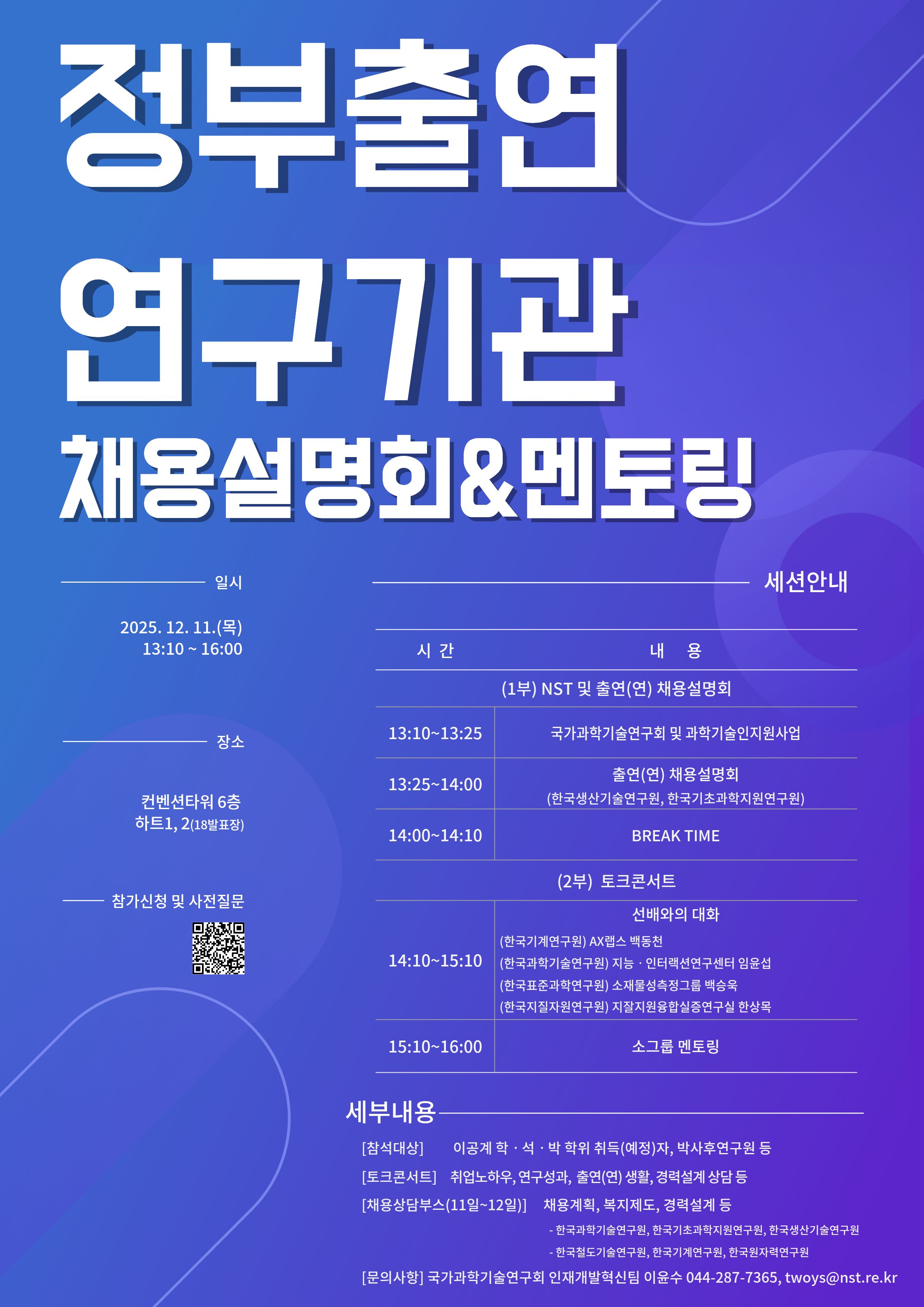 [국가과학기술연구회] [대한기계학회(12.11(목)~12.(금)] 과학기술분야 정부출연연구기관 채용설명회 사전신청 안내