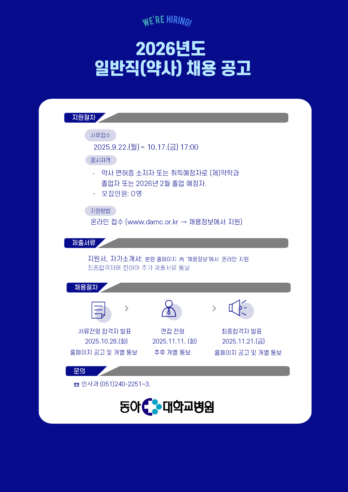 [채용] 2026년도 동아대학교병원 일반직(약사) 채용 공고